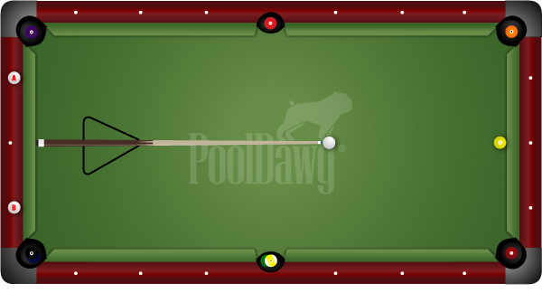 What you want to do now is put your left hand on the cue ball marked A and your right hand on the cue ball marked B. Moving your head along the bottom short rail left an right, find the place that the straight line you have made on the table looks straight.
