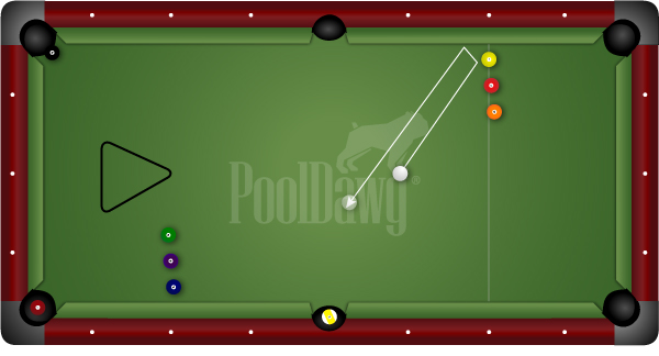 This week let’s look at left and right cut shots so that we have to move around the table and struggle a little to get our vision center over the line of every shot.