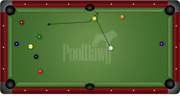Remember to chalk your tip, use a level cue and stay down on the shot when you are shooting this type of shot.