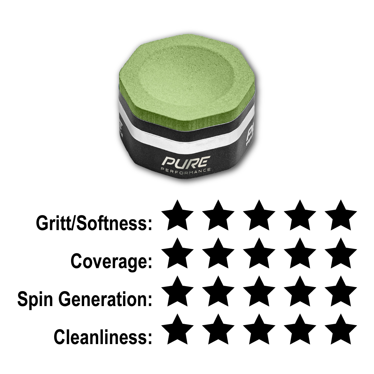Soft – If you are looking for chalk that goes on thick and smooth the soft option is for you. Pure Soft covers the tip and has a very nice feel when applying it to your tip. It also gives a little softer feel when striking the cue ball.
