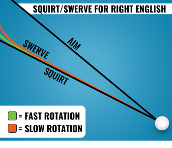 A: If you use sidespin, understanding squirt and swerve is essential to playing well. The only time the cueball goes directly where your stick is pointed is when you hit the Vertical Axis on the back of the ball. If you hit even a millimeter either side of the vertical center, your cueball will squirt, and it may swerve. And of course, when a spinning cueball hits another ball, there will also be "throw" effects. There are many stick lines that will pocket a given ball, as each increment of english or speed or elevation changes the correct aim. Any time you use english, an aiming adjustment is required.